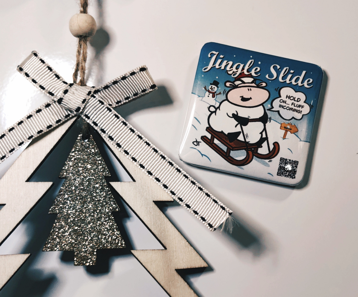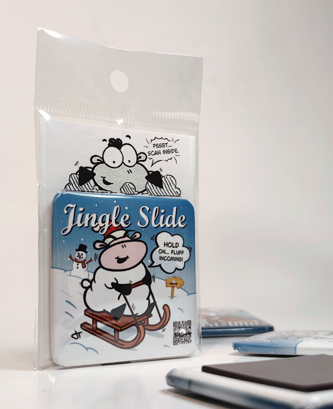 JINGLE SLIDE – Odkrij čarobne BigSheep QR magnetke! Vsak magnet skriva unikaten kratek video, ki se odpre s skeniranjem QR kode.