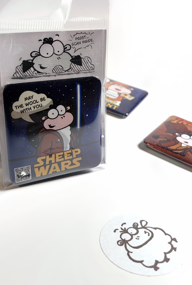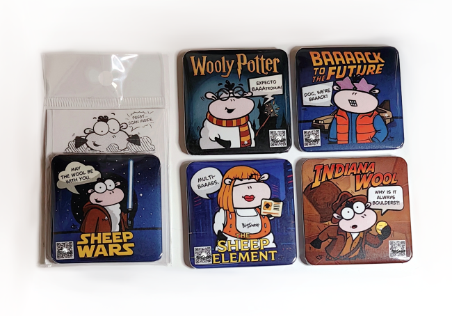 5-PACK – Odkrij čarobne BigSheep QR magnetke! Vsak magnet skriva unikaten kratek video, ki se odpre s skeniranjem QR kode.