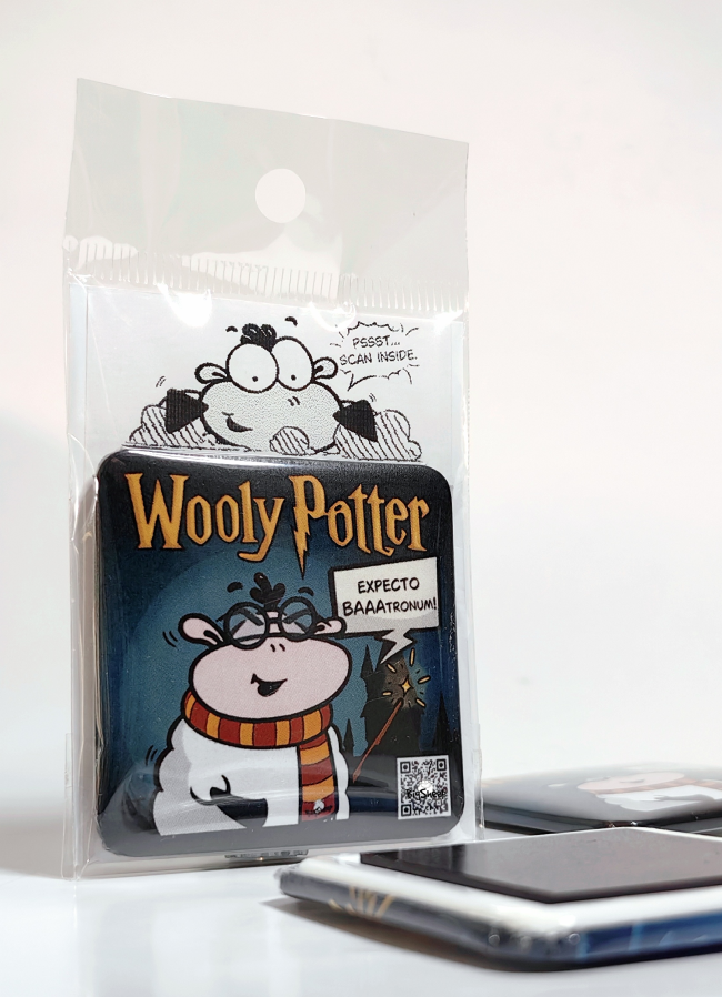 WOOLY POTTER – Odkrij čarobne BigSheep QR magnetke! Vsak magnet skriva unikaten kratek video, ki se odpre s skeniranjem QR kode.